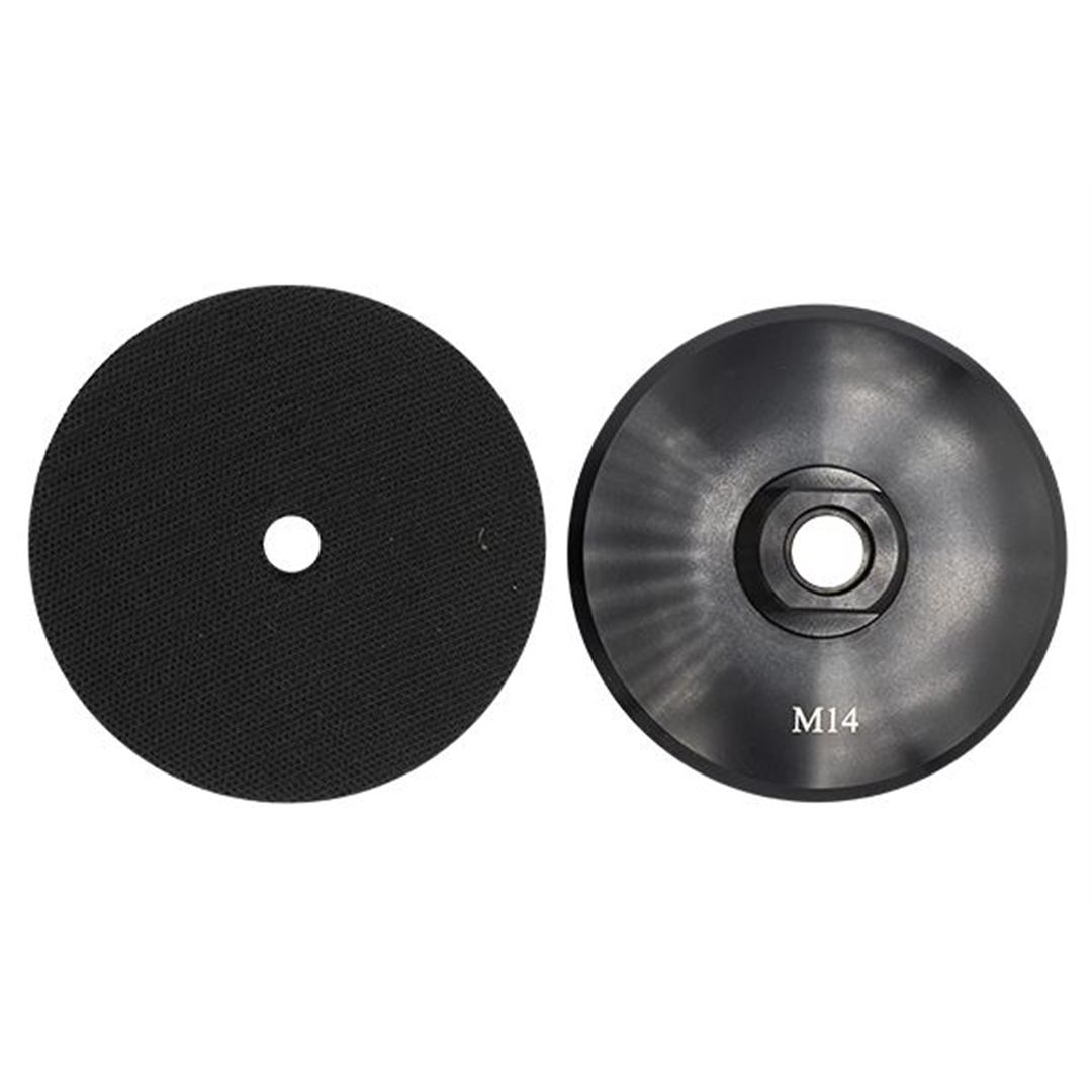 Black Coloured Aluminium backing plate with M14 thread, perfect for use on polishers. Velcro face for easy attachment and removal of polish pads 100m diameter