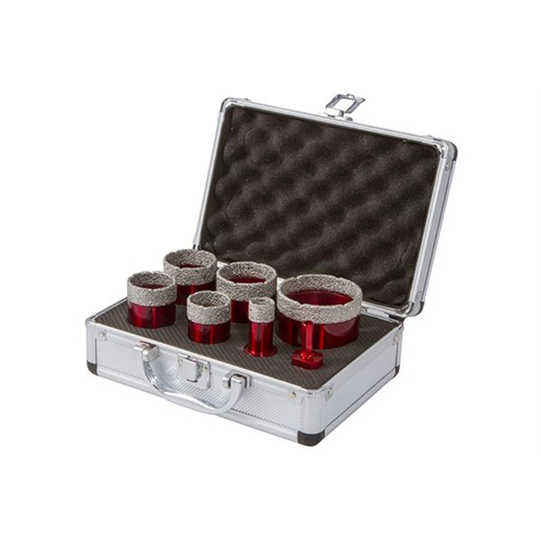 One set of Vaccum Brazed Core Drill bits in their own metal case.