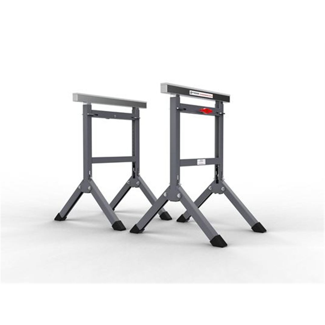 Sold as a PAIR, the Easy Adjustable Fabrication Stand is designed to support slabs for polishing, cutting, and many other purposes. Accommodates all slab lengths by adding another stand. The top is covered with rubber to protect slabs from being damaged. It folds easily for transporting from job to job.