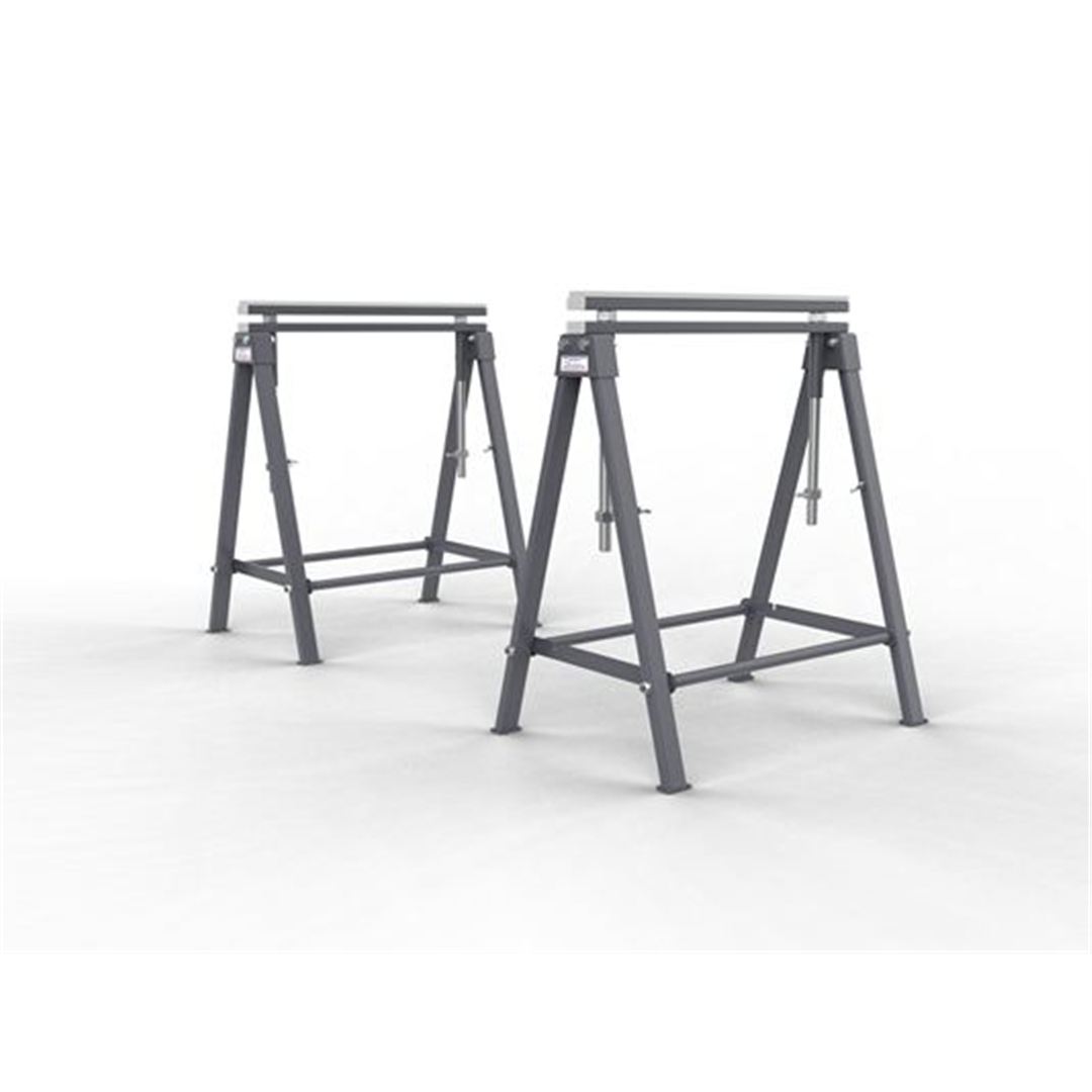 Sold as a pair, the AFS3139-W Fabrication Stands are designed to support slabs for polishing, sharpening, cutting, and many other purposes. Height is adjustable from 800mm to 1000mm and accommodates all slab lengths by simply adding another stand. The top is covered with white rubber to protect slabs from being damaged or marked. They fold easily for transporting from job to job.