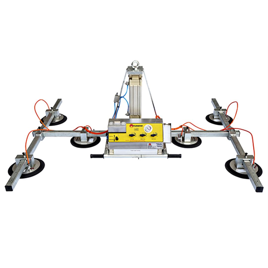 This essential piece of equipment is fitted with a pneumatic tilting piston which provides complete control of vertical and horizontal positions. A continuous air supply combined with a Venturi system generates vacuum into 6 individual pads, allowing you to hold slabs up to 500kg (maximum) and is fitted with a gauge displaying the vacuum intensity.