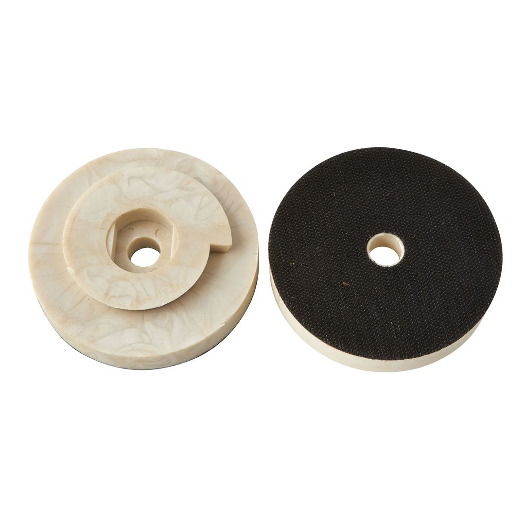 100mm Velcro backing pad rigid with Snail Lock fitting to mount our flexible resin bond diamond polishing pads to edge polishing machines.